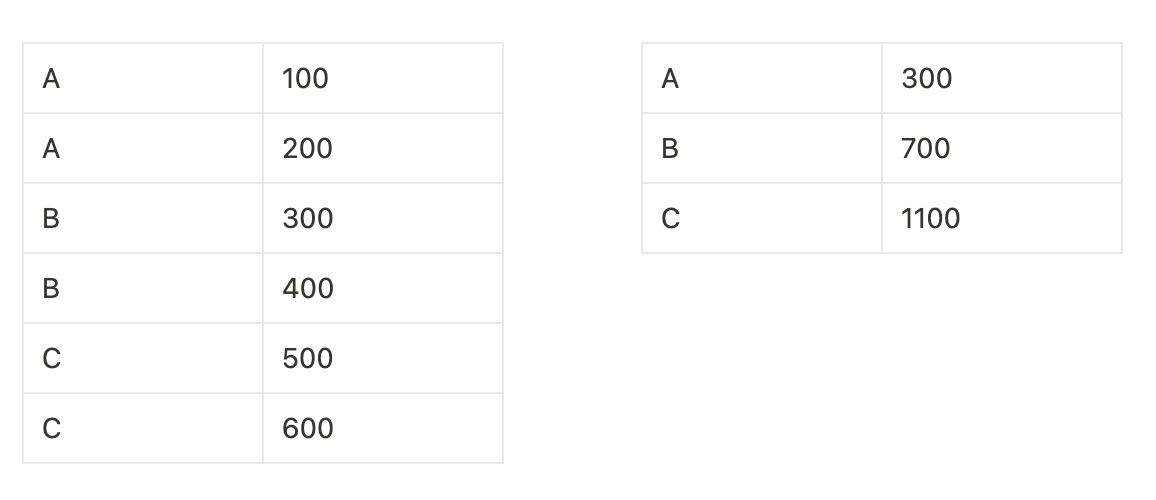 SELECT 그룹, SUM(값) FROM 테이블 GROUP BY 그룹